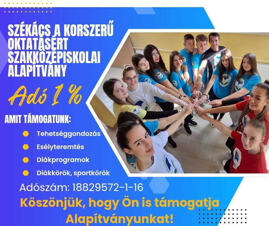 A „SZÉKÁCS” A KORSZERŰ OKTATÁSÉRT SZAKKÖZÉPISKOLAI ALAPÍTVÁNY TÁMOGATÁS