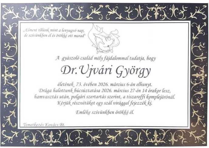 TISZTELETTEL EMLÉKEZÜNK SZERETETT MUNKATÁRSUNKRA, PORTÁSUNKRA, DR. UJVÁRI GYÖRGYREEgyéb / 2026-03-11 2026-03-20